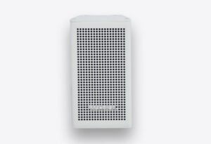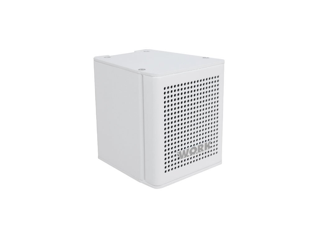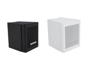 The narrow-extruded aluminium enclosure has been designed for a seamless visual integration and is available in black or white finish. The grille is also made of aluminium and internally covered with a protective water repellent fabric, featuring thereby an IP 65 protection rating.